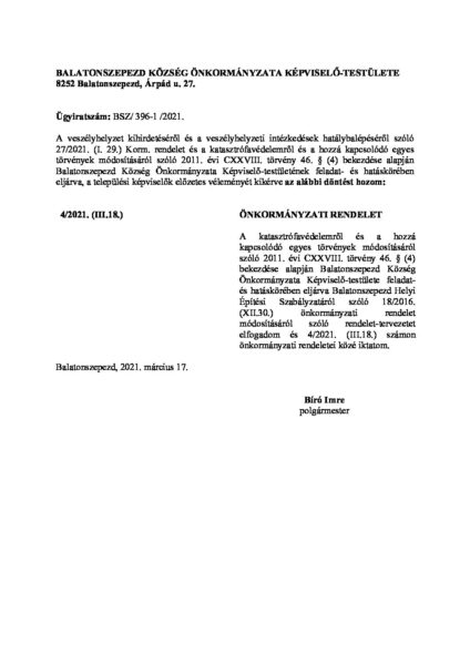 2021. évi rendeletek