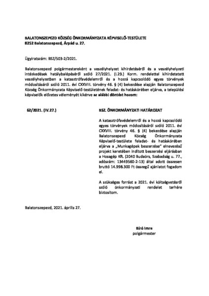 Balatonszepezd Község Önkormányzat Gazdasági Programja
