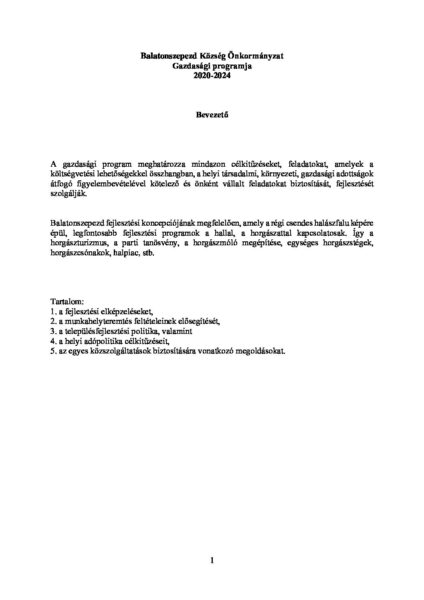 Balatonszepezd Község Önkormányzat Gazdasági Programja